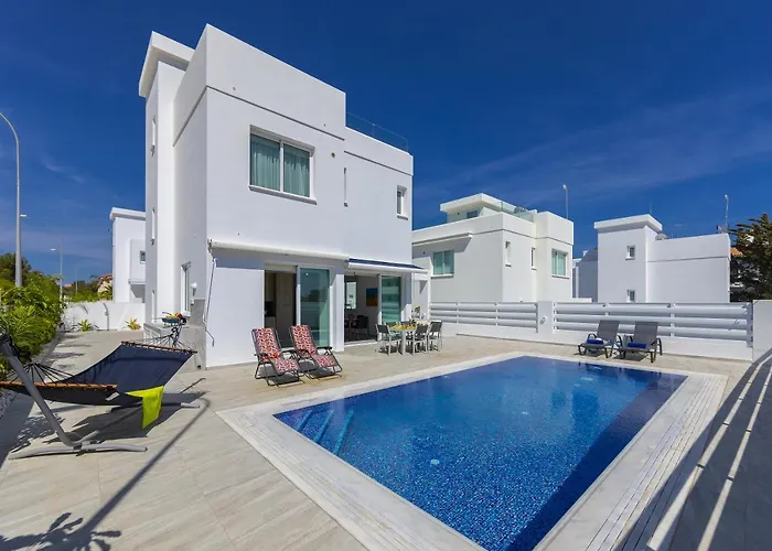 Protaras Villa Araella nabízí ubytování pro 6 hostů ve městě Ayia Napa a poskytuje jim parkování zdarma, venkovní plavecký bazén a akvapark. Tato vila se nachází v 3 km od Národní lesopark Cape Greco a 6 km od Klášter Agia Napa.